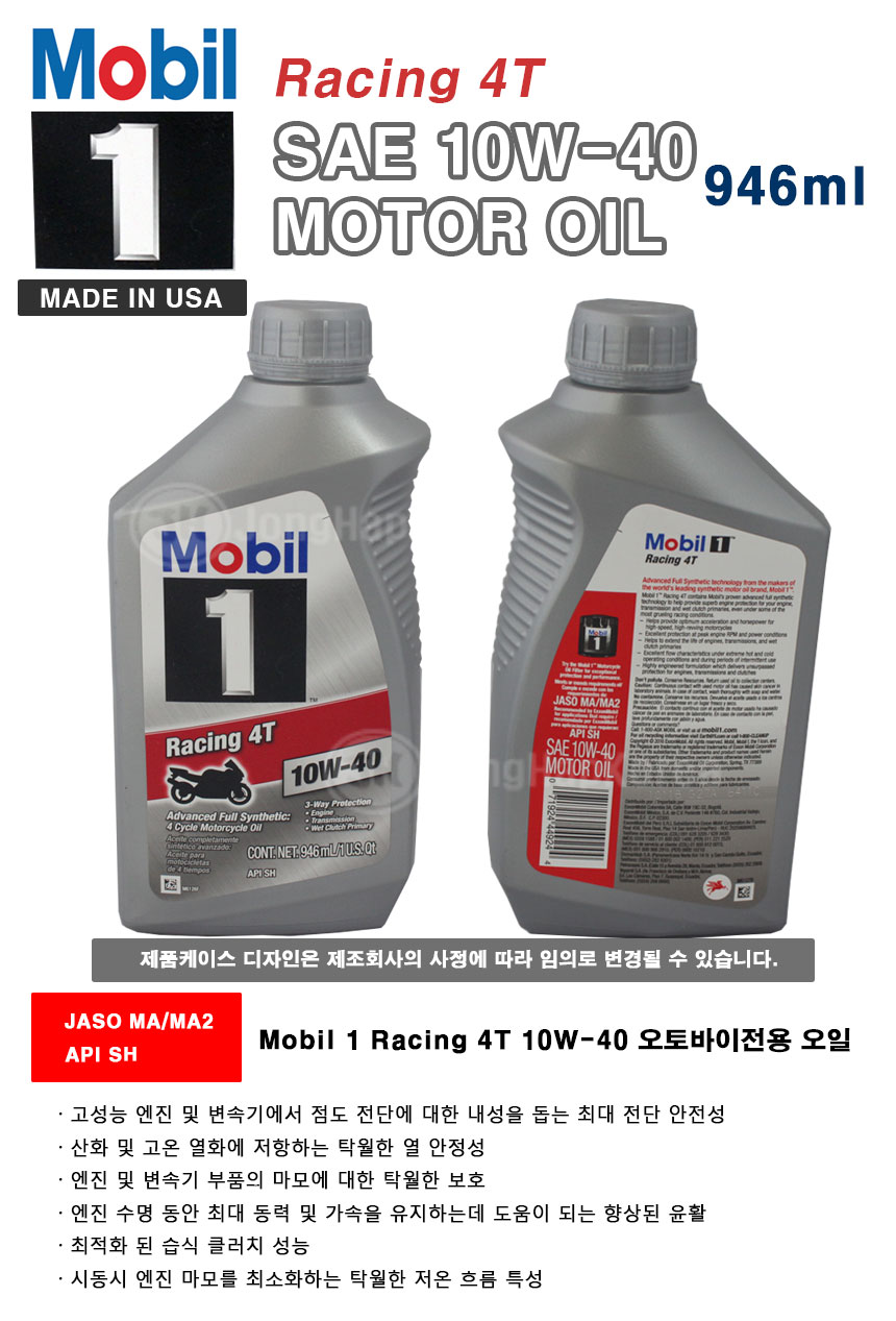 Mobil 1 Racing 4T 10W-40 ¿ÀÅä¹ÙÀÌÀü¿ë¿ÀÀÏ 946ml