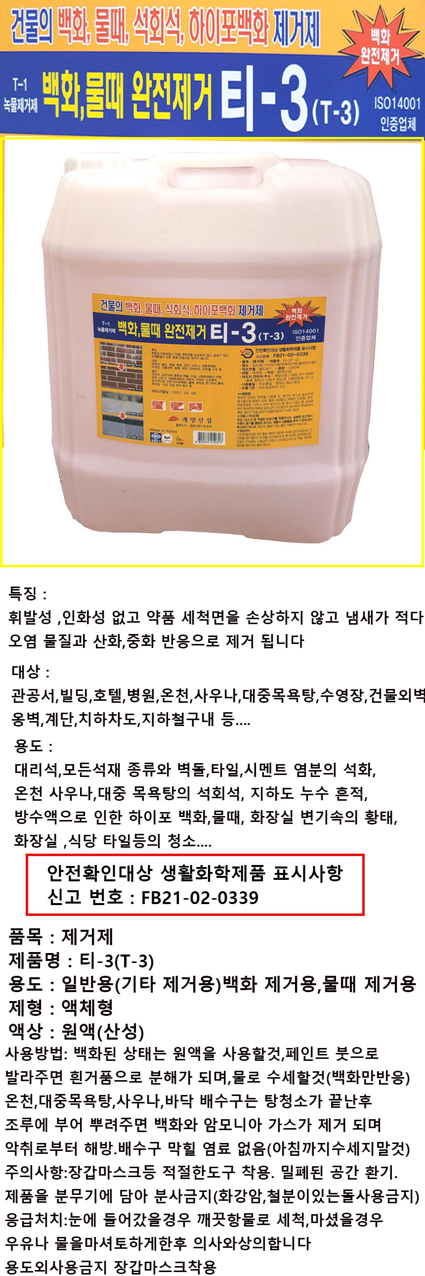 home > »ê¾÷/¾ÈÀü¿ëǰ > ¼¼Á¤Á¦/ÄÚÆÃÁ¦ > T-3¹éÈ­Á¦°ÅÁ¦20L/¹°¶§Á¦°ÅÁ¦/¼®È¸¼®ÇÏÀÌÆ÷¹éÈ­Á¦°ÅÁ¦