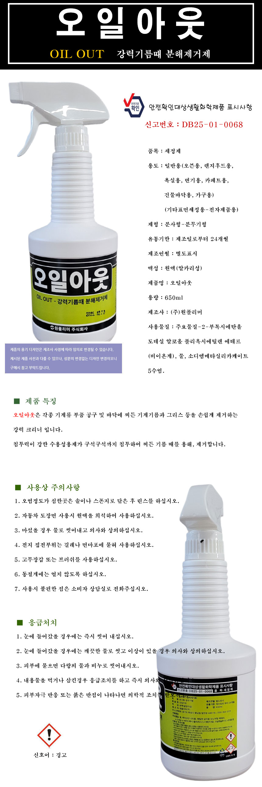 home > »ê¾÷/¾ÈÀü¿ëǰ > ¼¼Á¤Á¦/ÄÚÆÃÁ¦ > [¿øÆú¸®¸Ó] ¿ÀÀϾƿô 650ml/ °­·Â±â¸§¶§ ºÐÇØÁ¦°Å°Ô