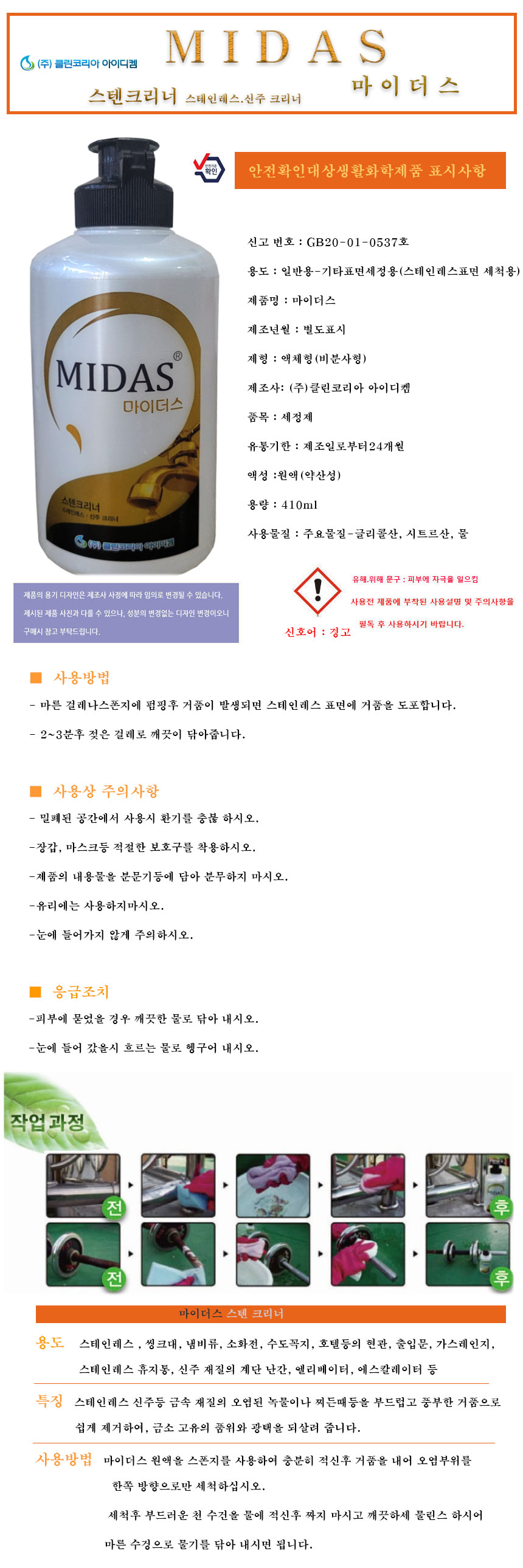 home > »ê¾÷/¾ÈÀü¿ëǰ > ¼¼Á¤Á¦/ÄÚÆÃÁ¦ > (Ŭ¸°ÄÚ¸®¾Æ)¸¶ÀÌ´õ½º 410ml ½ºÅ×Àη¹½º ½ÅÁÖ Å©¸®³Ê