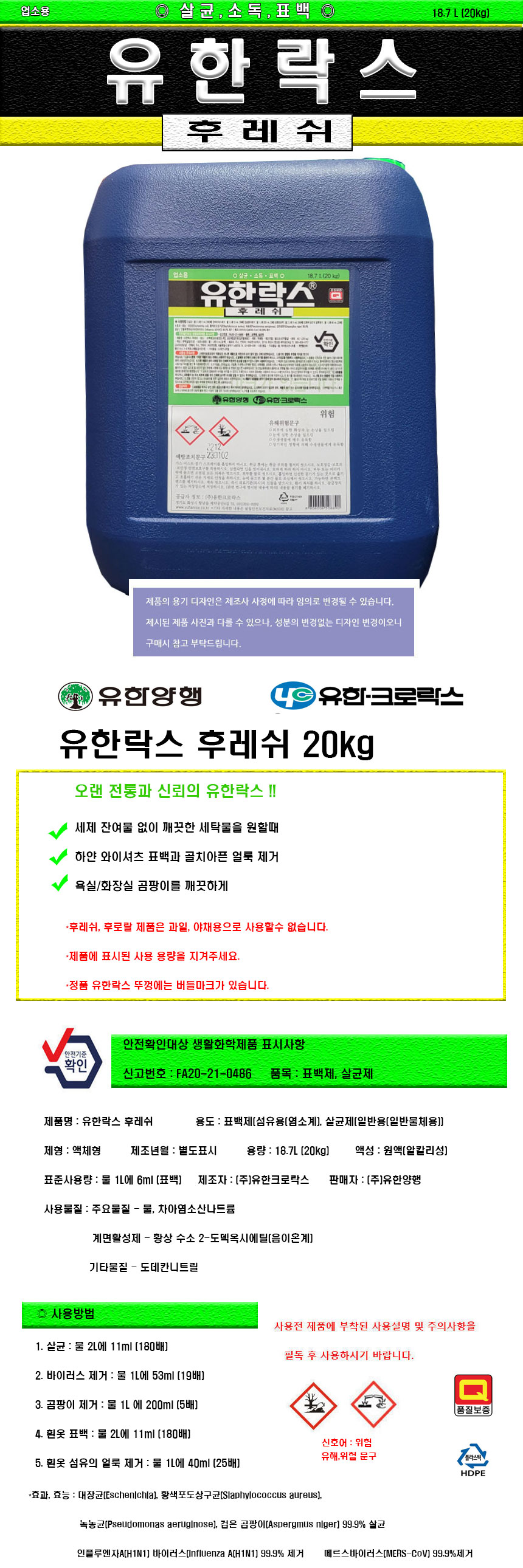 home > »ýȰ¿ëǰ/ÁÖ¹æ¿ëǰ > »ýȰÀâÈ­ > ¼¼Á¦/¼¼Á¤Á¦ > (À¯ÇѾçÇà)À¯ÇѶô½º ÈÄ·¹½¬ 20kg ¾÷¼Ò¿ë °õÆÎÀÌ»ì±Õ ¼Òµ¶