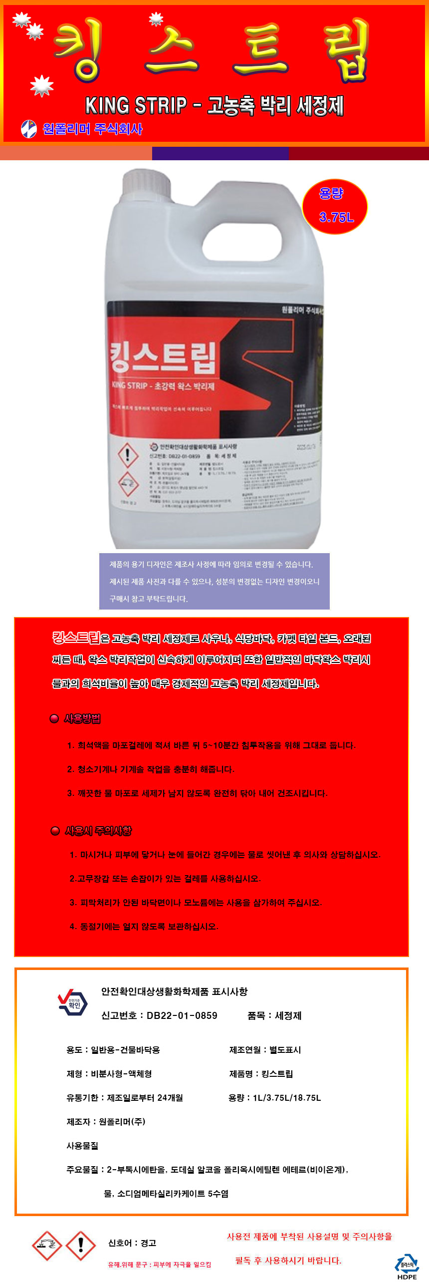 home > »ê¾÷/¾ÈÀü¿ëǰ > ¼¼Á¤Á¦/ÄÚÆÃÁ¦ > (¿øÆú¸®¸Ó)Å·½ºÆ®¸³-°í³óÃà¹Ú¸®Á¦ 3.75L ŸÀϹٴڼ¼Á¤Á¦