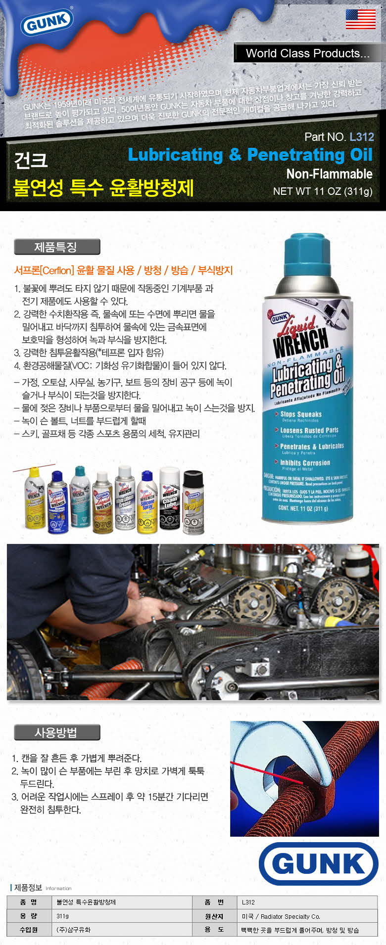 - home > »ê¾÷/¾ÈÀü¿ëǰ > À±È°À¯/±¸¸®½º > GUNK °ÇÅ© ºÒ¿¬¼º Ư¼ö ¹æÃ»À±È°Á¦/L312/°ÇÅ© À±È°Á¦