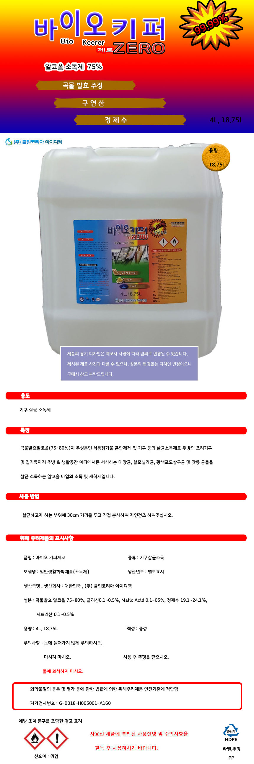 home > »ýȰ¿ëǰ/ÁÖ¹æ¿ëǰ > »ýȰÀâÈ­ > ¼¼Á¦/¼¼Á¤Á¦ > (Ŭ¸°ÄÚ¸®¾Æ ¾ÆÀ̵ðÄÍ)¹ÙÀÌ¿ÀŰÆÛ Á¦·Î 75% »ì±Õ¼Òµ¶Á¦ 18.75L
